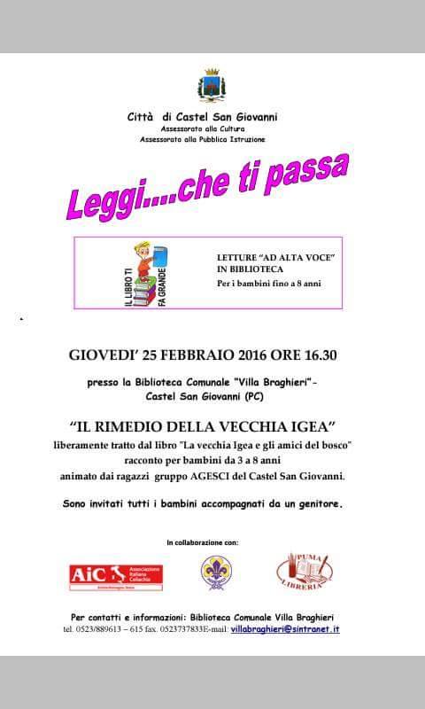 Progetto "Leggi che ti passa" - Biblioteca di Villa Braghieri (Castel San Giovanni)