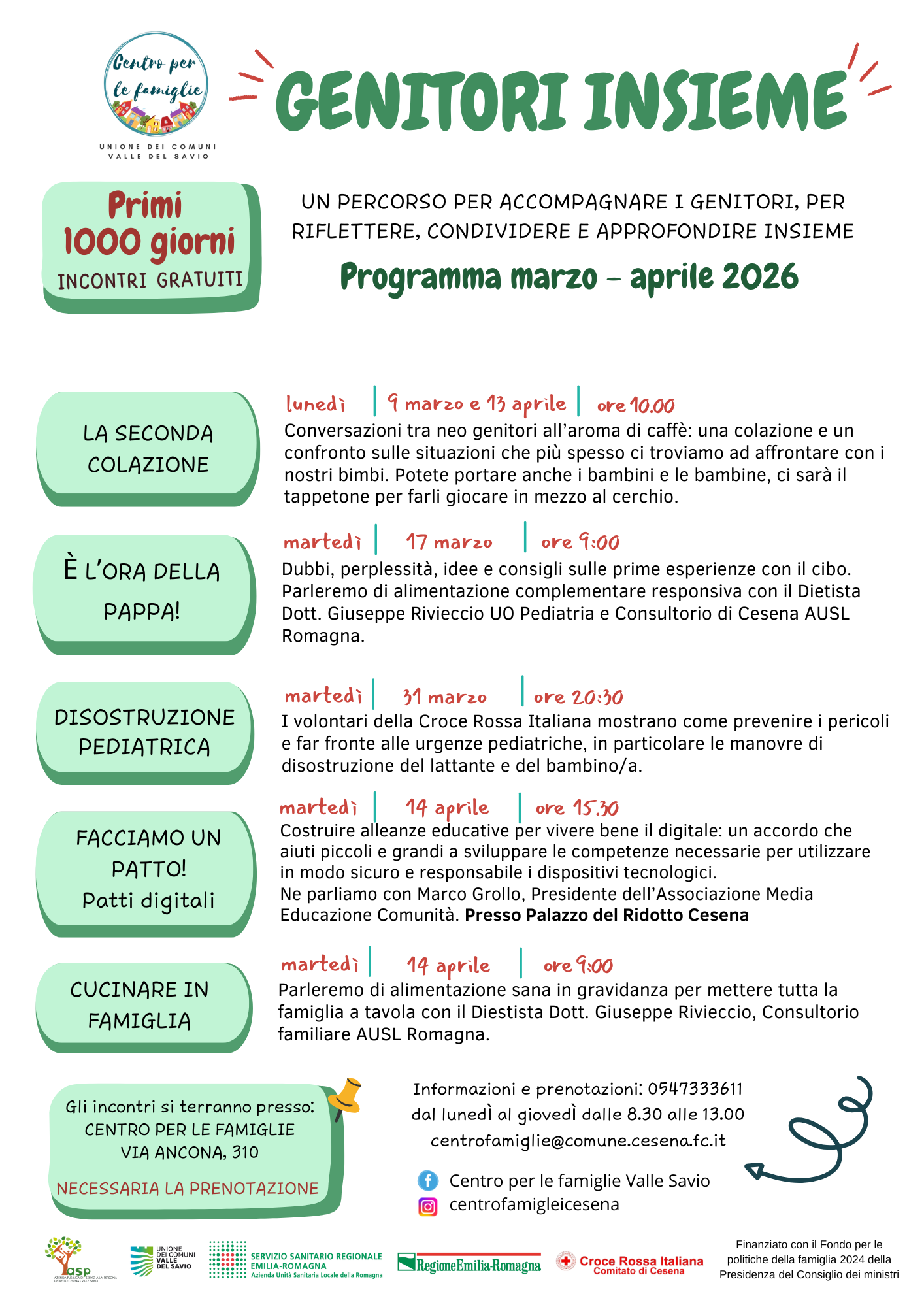 Info e iscrizioni: Centro perle famiglie Tel 0547333611 o via email: centrofamiglie@comune.cesena.fc.it