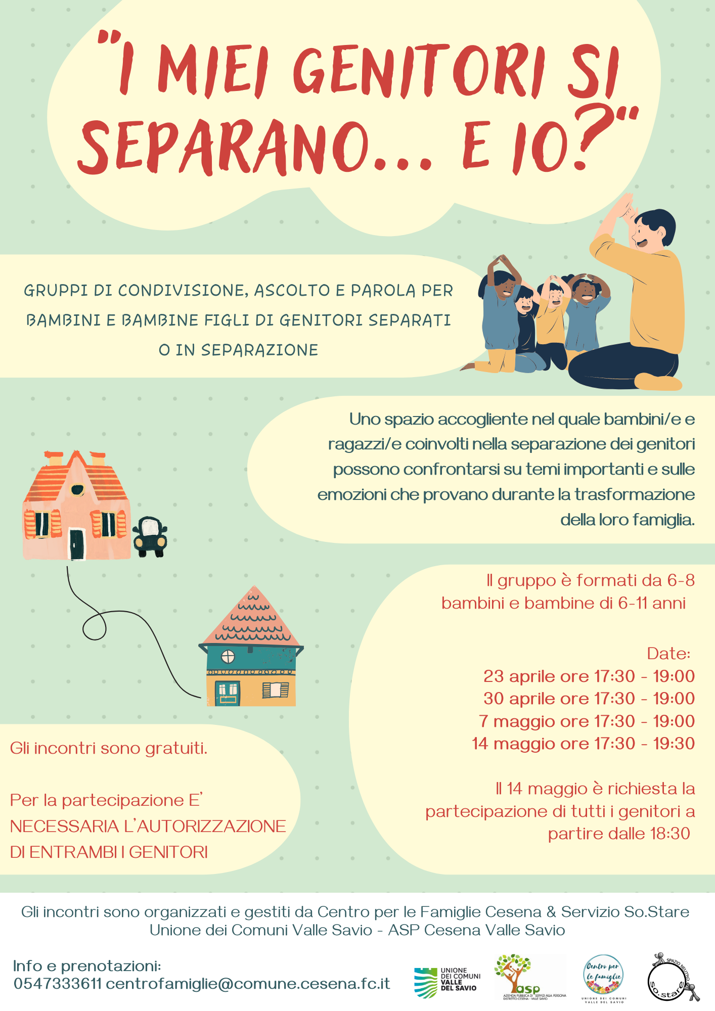 È un gruppo di condivisione, ascolto e parola per figli/e di genitori separati o in via di separazione. Uno spazio accogliente nel quale bambini/e e ragazzi/e coinvolti nella separazione dei genitori possono confrontarsi su temi importanti e sulle emozioni che provano durante la trasformazione della loro famiglia. Attraverso la parola, il disegno, e il gioco troveremo modi per familiarizzare con i cambiamenti, esprimere i sentimenti e le proprie emozioni, migliorare il dialogo con i genitori.