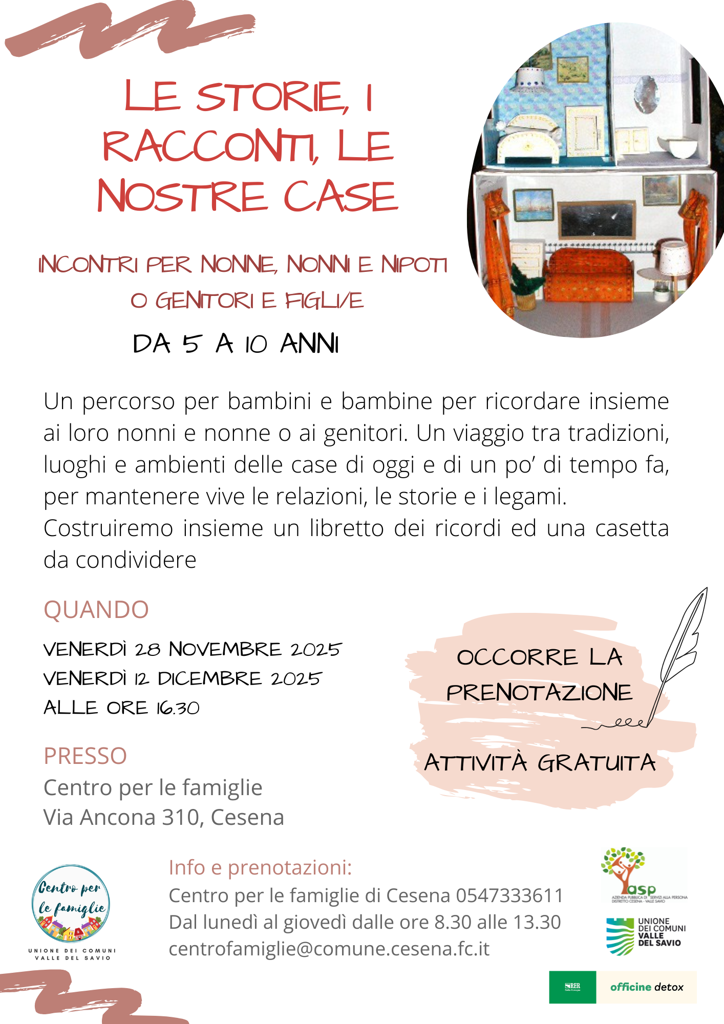 Martedì 4 novembre alle ore 16.30. Presso il Centro per le famiglie via Ancona 310, Cesena