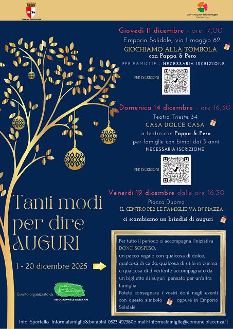 - Giovedì 11 dicembre h. 17.00 "Giochiamo alla Tombola" con Pappa e Pero - Emporio Solidale Via Primo Maggio, 62.