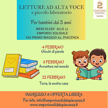 Sono laboratori, iniziative, attività e incontri che si svolgono all’Emporio Solidale, via Primo Maggio n. 62, a Piacenza, tel. 0523/751952.