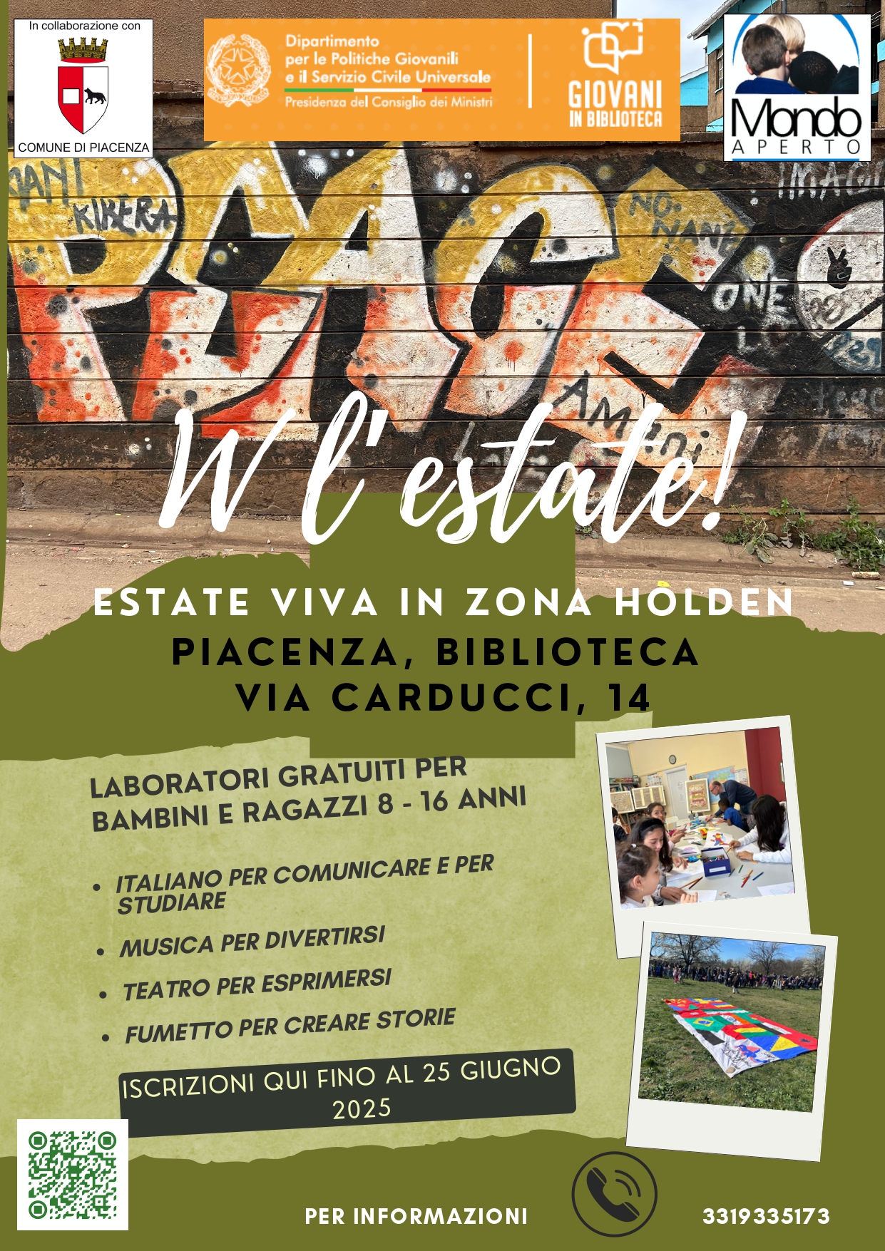 Si tratta di uno spazio educativo e di aggregazione per giovani, creato dal Comune di Piacenza, nell'ambito del progetto Giovani in Biblioteca”, del Dipartimento per le Politiche Giovanili e il Servizio Civile Universale della Presidenza del Consiglio dei Ministri.. Il progetto si concentra su attività ludiche, sociali e formative per utilizzare positivamente il tempo libero dei ragazzi e delle ragazze e promuovere lo sviluppo di interessi, abilità e relazioni sociali in un ambiente stimolante e inclusivo.