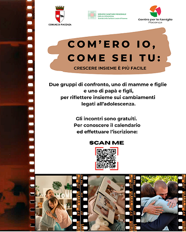 Il Centro per le Famiglie, in collaborazione con l'Azienda USL di Piacenza, propone la seconda edizione del progetto “Com’ero io, come sei tu”, pensato per accompagnare genitori e figli nei cambiamenti tipici della preadolescenza.