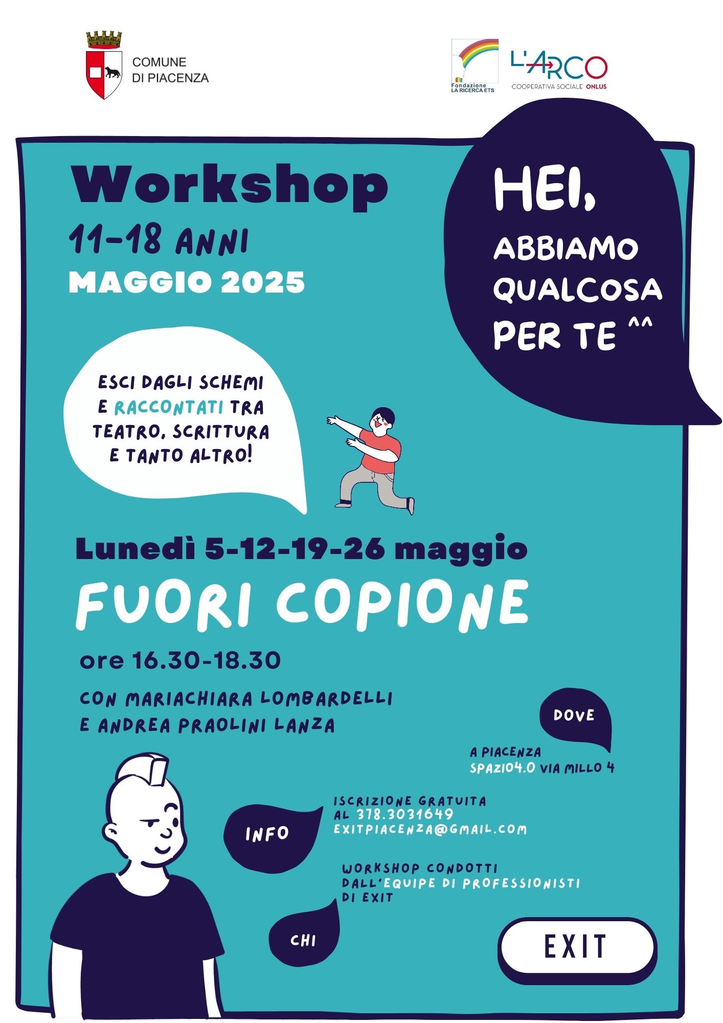 Per avere tutte le informazioni e per le iscrizioni contattare il numero 378.3031649 (messaggio o Whatsapp) o scrivere a exitpiacenza@gmail.com