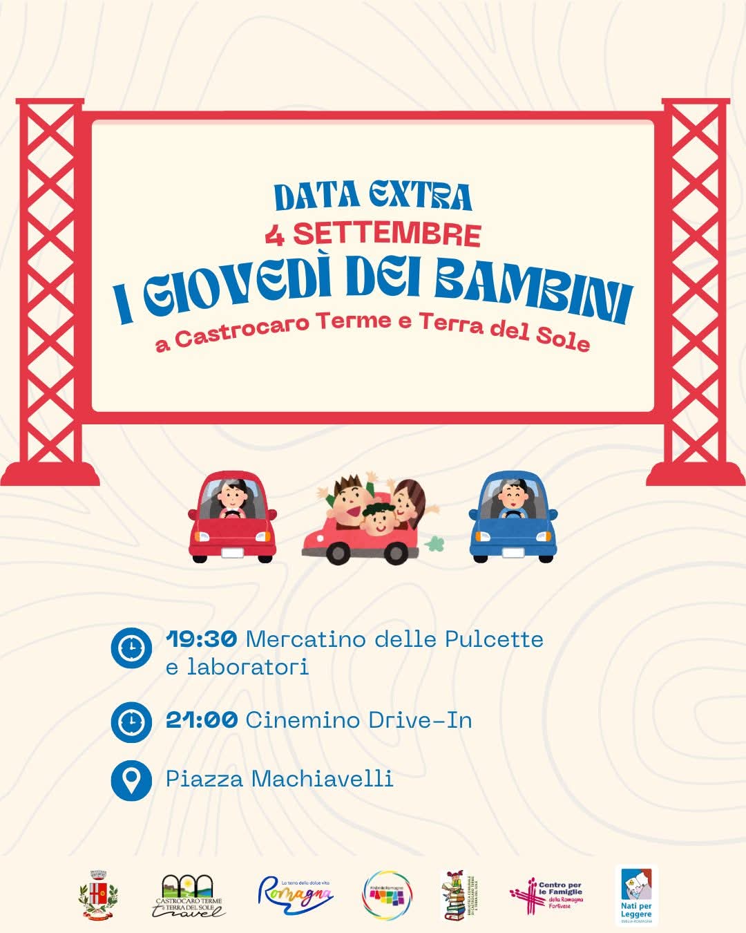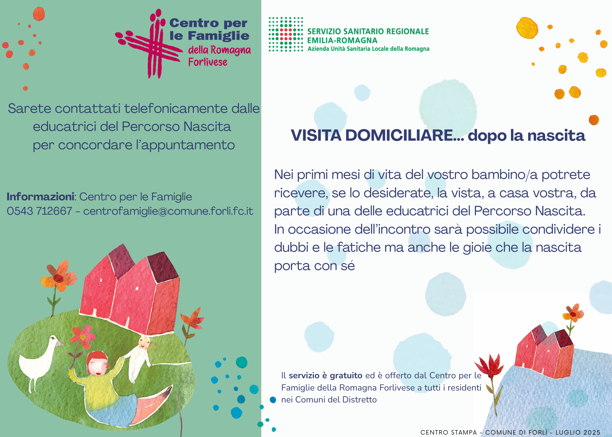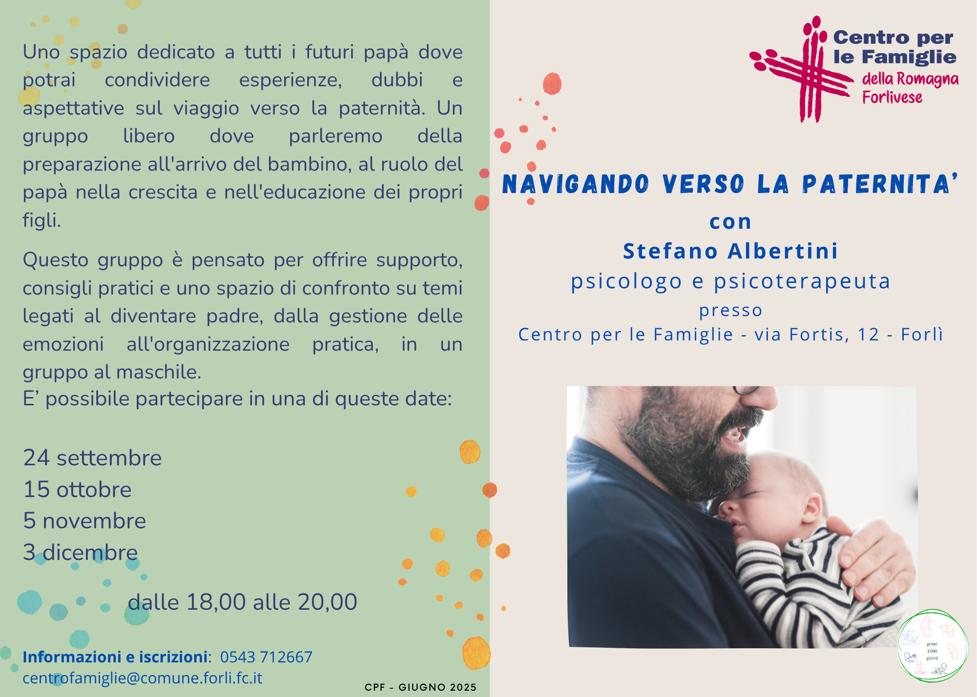 Sabato 20 settembre - ore 10.00, "Nuovi Nati & Nuovi Genitori (PDF - 4,1 MB)", su invito. Chi è impossibilitato a partecipare il giorno dedicato, può farlo negli appuntamenti successivi oppure, in via del tutto eccezionale, può far riferimento, alla segreteria del Vicesindaco (tel. 0543 712423). Chi non avesse ricevuto l'invito (ed ha figli nati nei mesi di maggio, giugno e luglio 2025) può partecipare comunque all'incontro. Anche i Comuni di Castrocaro Terme-Terra del Sole, Civitella di Romagna, Rocca San Casciano, Santa Sofia e Galeata consegneranno un kit/box di benvenuto ai nuovi nati.