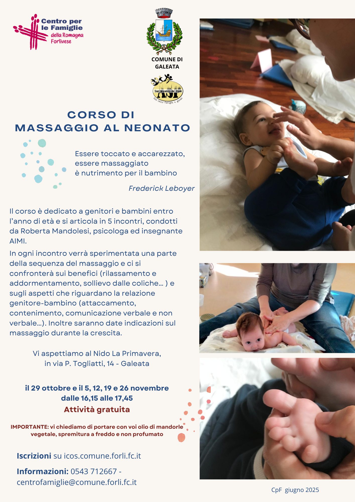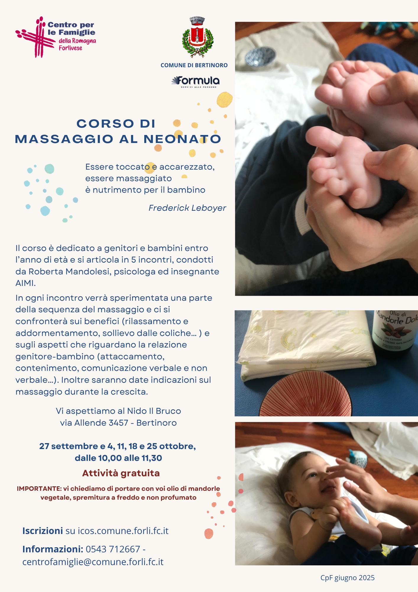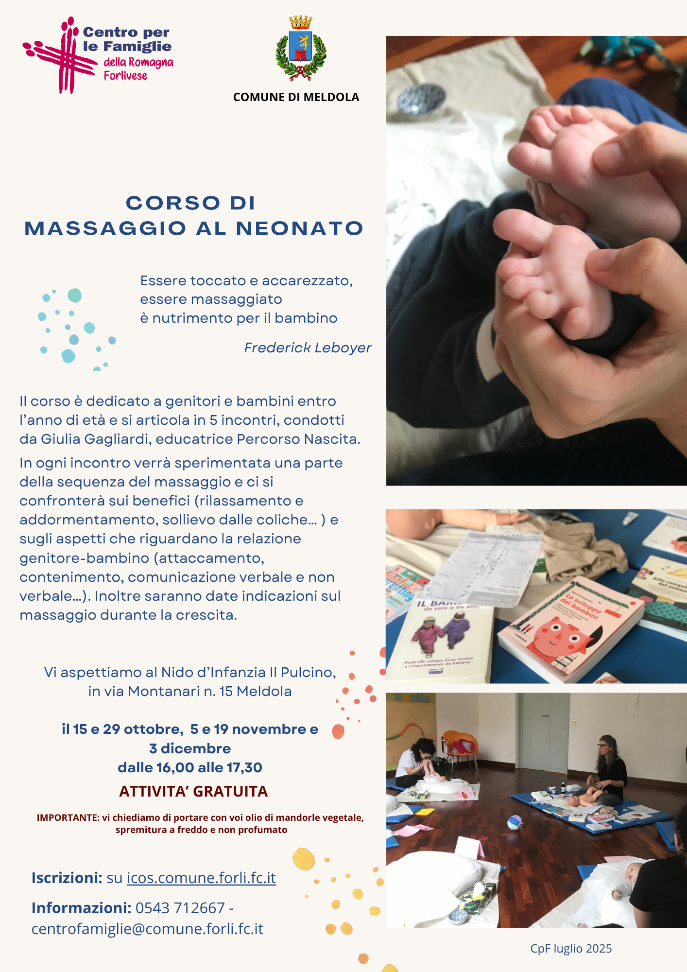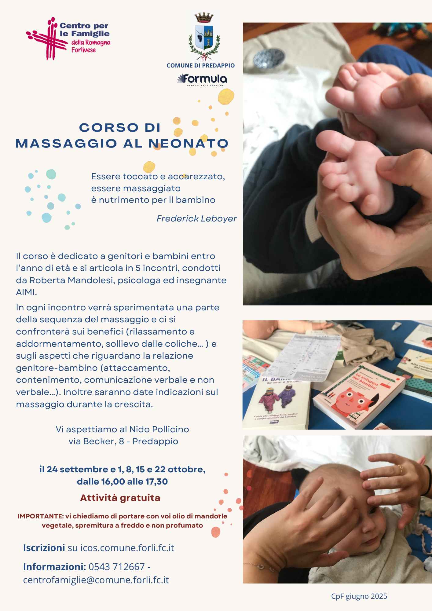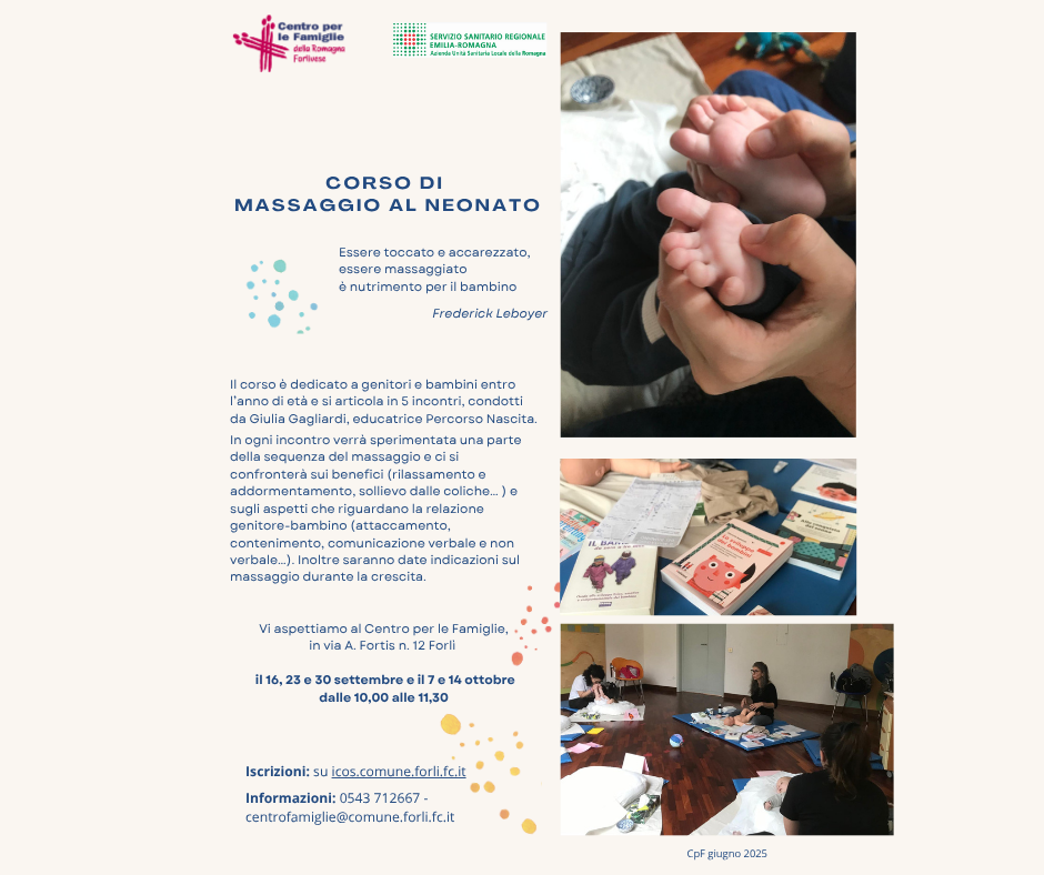 - Corso di massaggio al neonato a Forlì (PNG - 506,4 KB), Predappio (PNG - 2,3 MB), Bertinoro (PNG - 2,2 MB), Meldola (PNG - 2,2 MB) e Galeata (PNG - 2,3 MB).