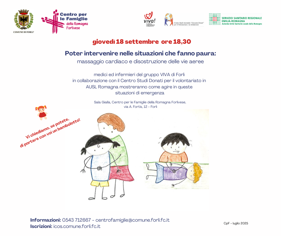 - Poter intervenire nelle situazioni che fanno paura: massaggio cardiaco e disostruzione pediatrica a Forlì (PNG - 291,2 KB) e a Meldola.