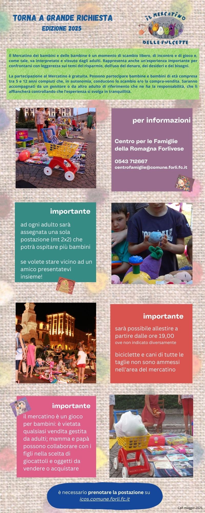 Iscrizione: su icos.comune.forli.fc.it. Info: 0543 712667 - centrofamiglie@comune.forli.fc.it.