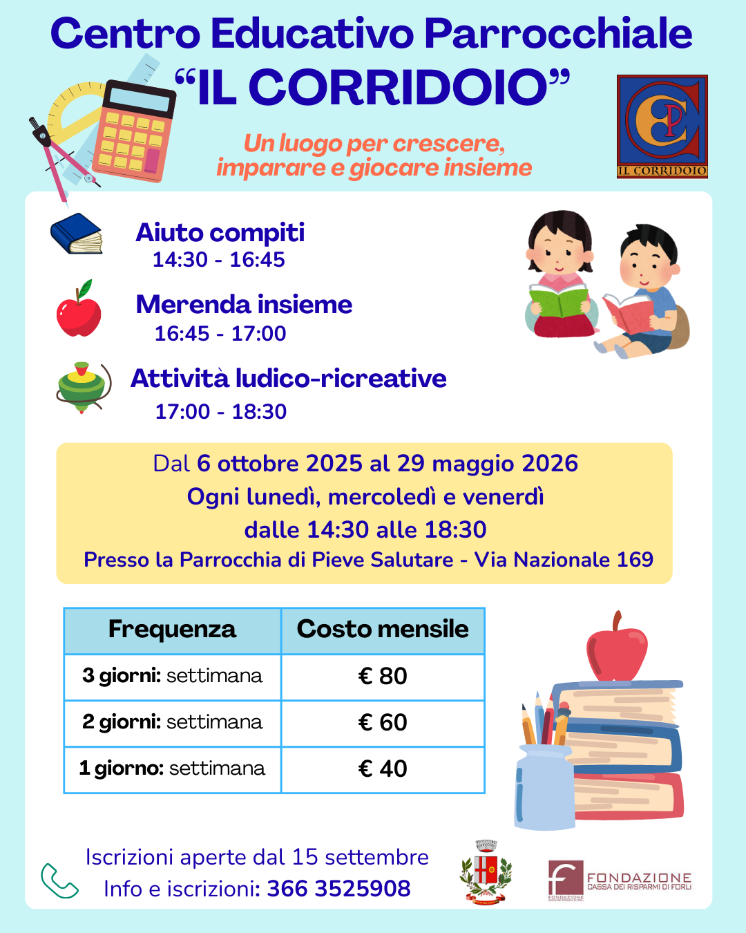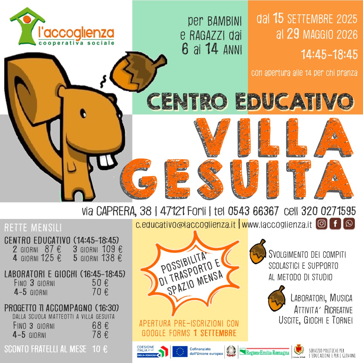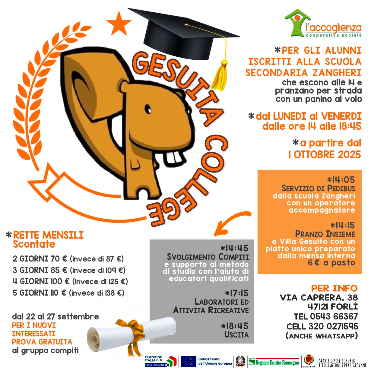 Info: 0543 712528 / 712534 - extrascuola@comune.forli.fc.it.