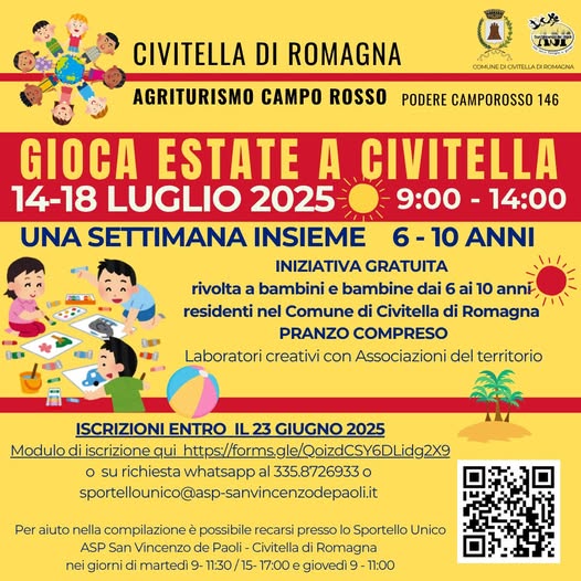 Per bambini 6/10 anni, residenti nel Comune di Civitella di Romagna, c/o Agriturismo Campo Rosso: